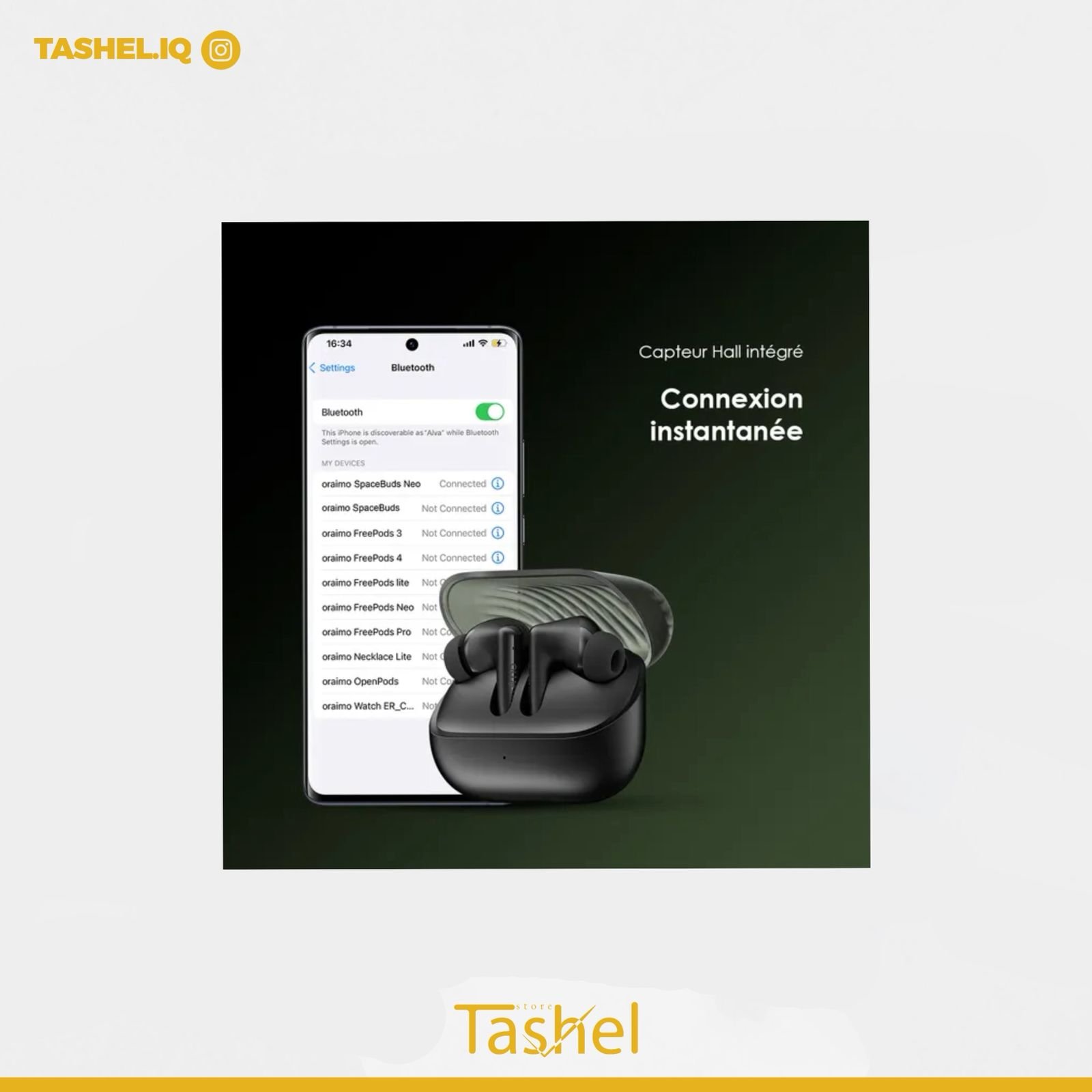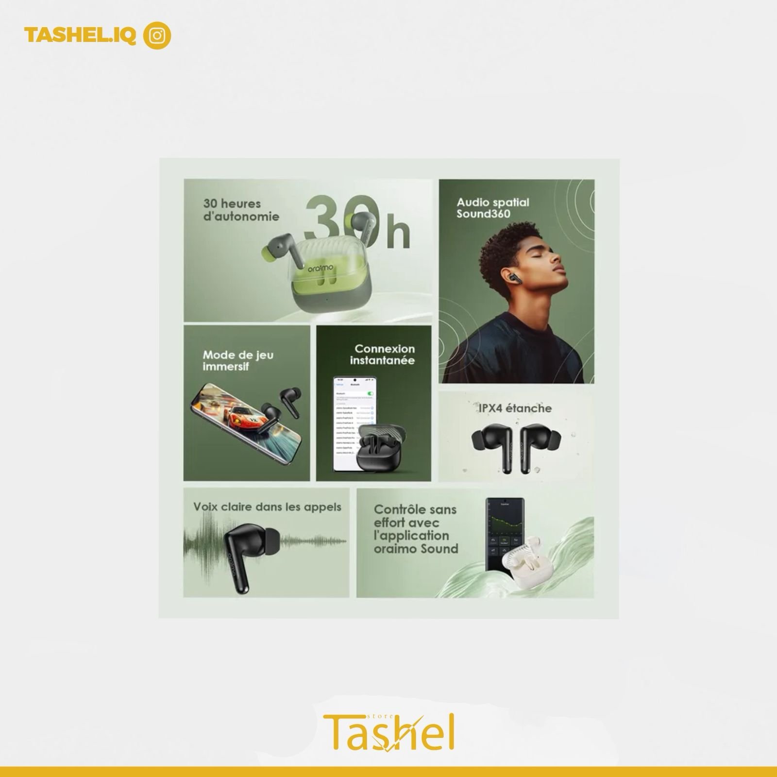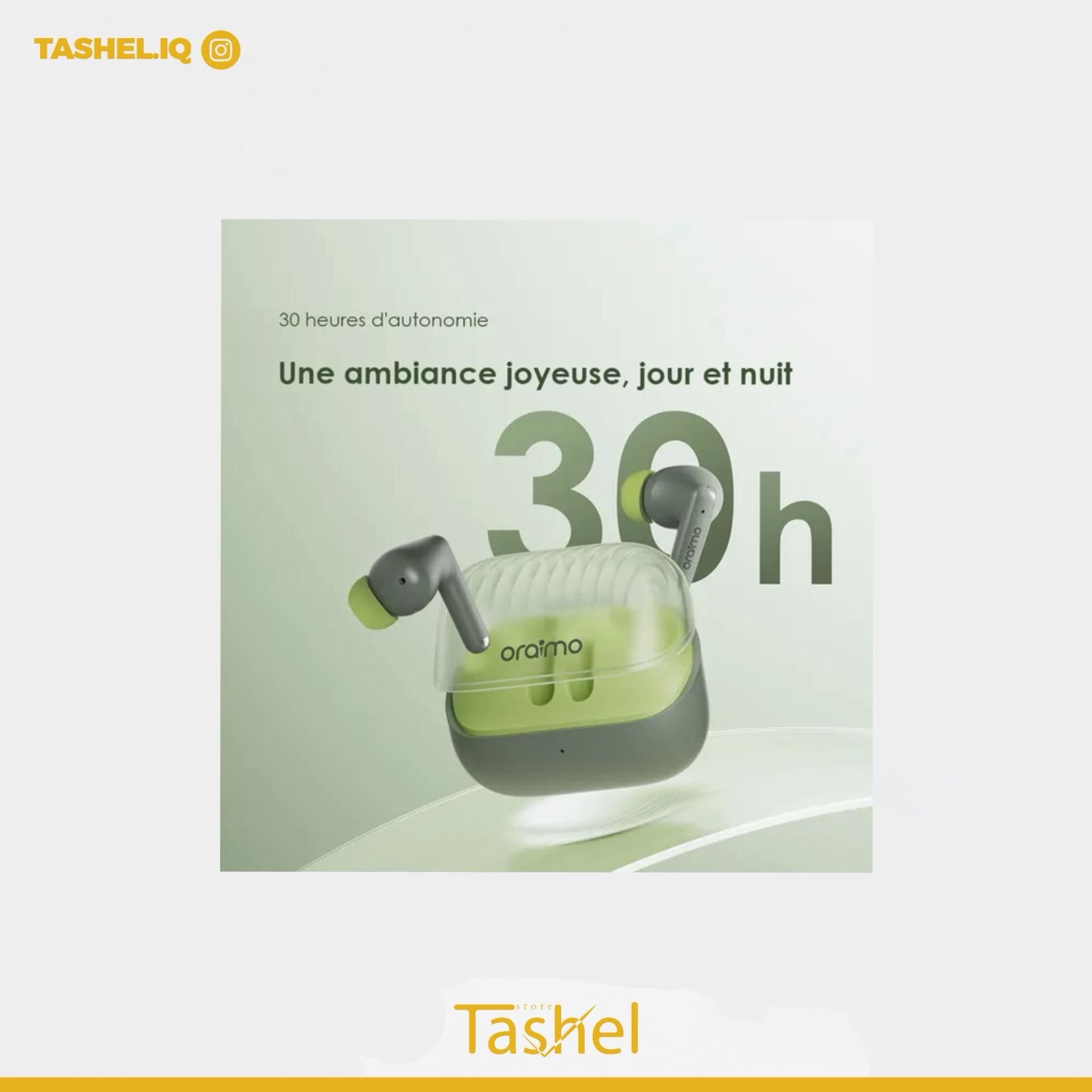 ارتقِ بتجربتك الصوتية مع سماعات Oraimo اللاسلكية – تصميم أنيق، أداء فائق، وصوت محيطي ثلاثي الأبعاد يجعلك في قلب الحدث. مثالية للمكالمات، الألعاب، والموسيقى، وتدوم طويلاً حتى في أكثر أيامك نشاطاً. استمتع بالحرية، والراحة، والصوت النقي في كل لحظة!